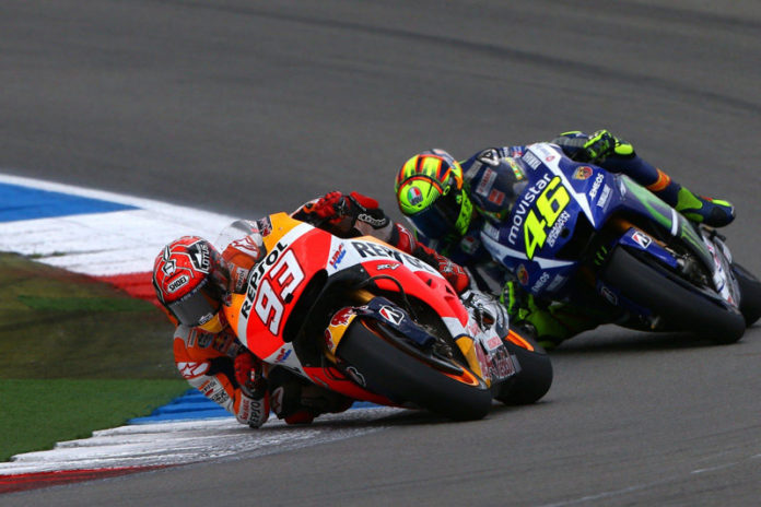 Rossi, yang marah besar kepada Marquez akibat insiden di Argentina, berada di posisi kedua. Pebalap Movistar Yamaha itu lebih lambat 0,396 detik di belakang Marquez.