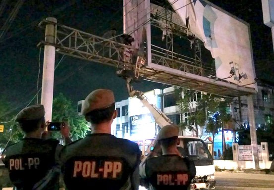 "Iya, malam ini personil dari pemilik tiang kembali melanjutkan pembongkaran bangunan yang kemarin sempat dihentikan sementara. Nah kami dari Dishub bersama Satpol PP Pekanbaru mengawasi sekaligus mendampingi pemilik melakukan pembongkaran," katanya.