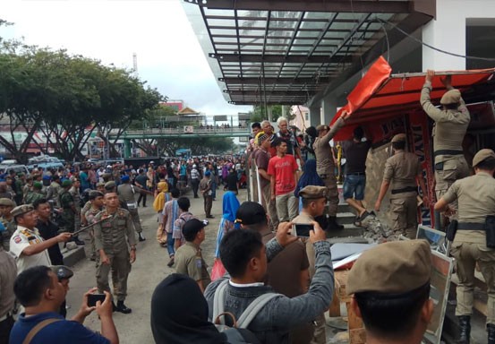 Suasana memanas pada saat puluhan Satpol PP Pekanbaru mulai melakukan pembongkaran TPS yang berada di depan pintu masuk STC. Bentrokan tidak bisa dihindari yang dimulai dari aksi saling dorong antara pedagang yang menolak pindah dengan satpol pp.