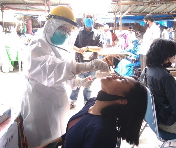 Firdaus melihat langsung pelaksanaan rapid tes dan swab masal yang dilakukan terhadap pedagang dan warga pengunjung pasar Agus Salim.