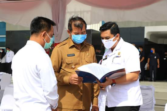 PEKANBARU - Wali Kota Pekanbaru Dr H Firdaus MT pimpin apel pembekalan Sosialisasi Daftar Tagih (SDT) terkait validasi dan penagihan piutang Pajak Bumi dan Bangunan (PBB) buku IV dan V. Acara ini berlangsung di Lapangan Upacara Kompleks Perkantoran Tenayan Raya, pada Rabu (15/7/2020).