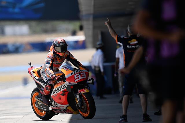 Sang delapan kali juara dunia ini sempat nekat turun dalam sesi Kualifikasi 1 (Q1), namun setelah satu lap, ia kembali ke garasi dan tak kembali ke trek. Setelah pembicaraan dengan tim medis dan petinggi tim, akhirnya Marquez memutuskan absen dari balapan.