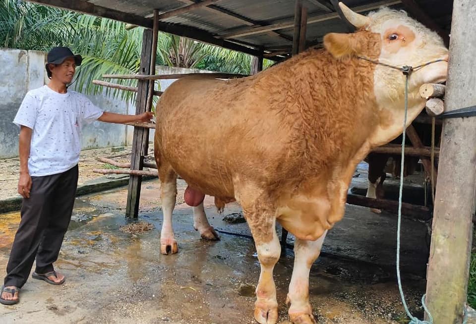 PEKANBARU - Sapi jenis Simental dengan bobot 897 Kilogram dipilih oleh Presiden Republik Indonesia, Jokowi melalui Kementerian Sekretariat Negara (Setneg) RI untuk dikurbankan dalam peringatan hari raya Idul Adha di Provinsi Riau.