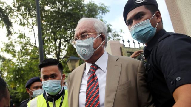 Dalam persidangan di Pengadilan Tinggi di Kuala Lumpur, Hakim Mohd Nazlan Ghazali memutuskan bahwa Najib bersalah atas semua dakwaan yang dilayangkan padanya. Totalnya ada tujuh dakwaan, yakni tiga tuduhan pelanggaran kepercayaan, tiga tuduhan pencucian uang terkait penyelewenangan dana 42 juta ringgit dari SRC International (mantan anak perusahaan 1MDB), dan satu tuduhan penyalahgunaan kekuasaan.