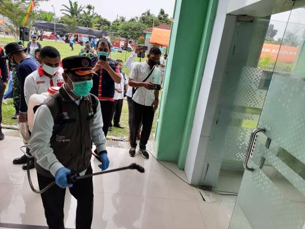 Pj Sekda Kota Pekanbaru M Jamil MSi memimpin TOS berupa penyemprotan dan rapid tes masal yang digelar di Kelurahan Rejosari Kecamatan Tenayanraya Pekanbaru, Rabu (29/7/2020). Diterangkan Juru Bicara Bidang Kesehatan Gugus Tugas Percepatan Penanganan Covid-19 Kota Pekanbaru dr Mulyadi menyebutkan, dalam program TOS itu, pemerintah kota akan lebih meningkatkan pelacakan kontak atau tracing terhadap pasien positif.