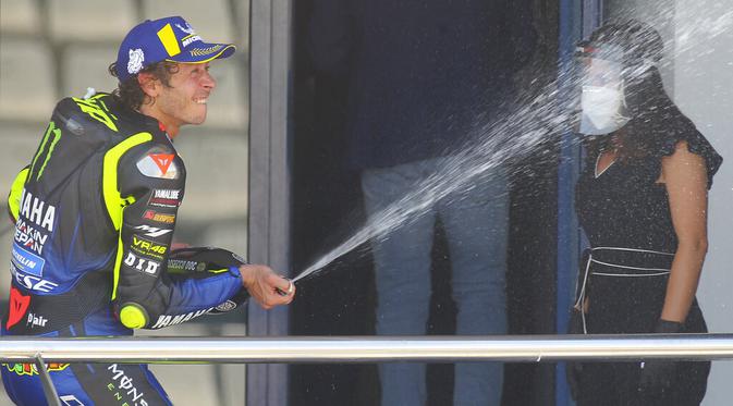 Rossi finis ketiga pada seri kedua MotoGP 2020 di Sirkuit Jerez, Spanyol, Minggu (26/7/2020). Ini merupakan podium pertama The Doctor sejak seri ketiga musim 2019 di Sirkuit Austin, Texas.