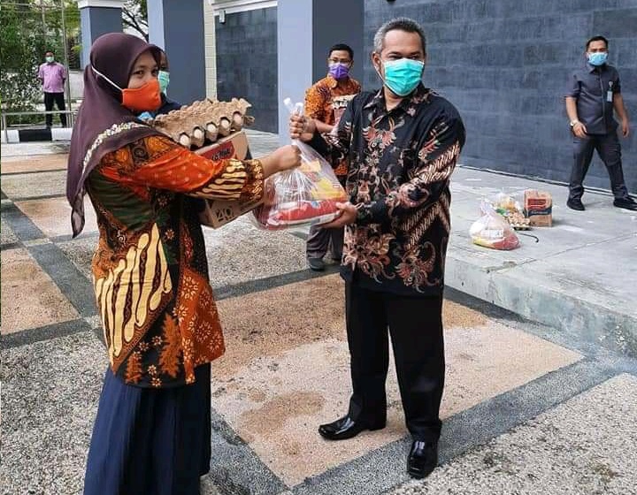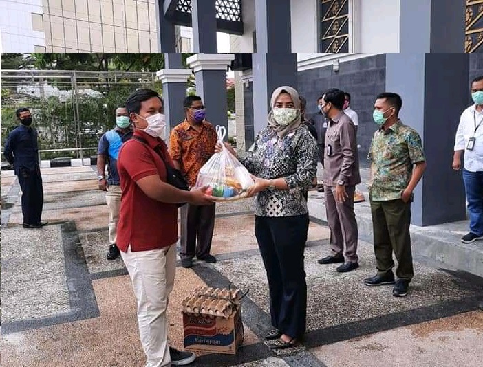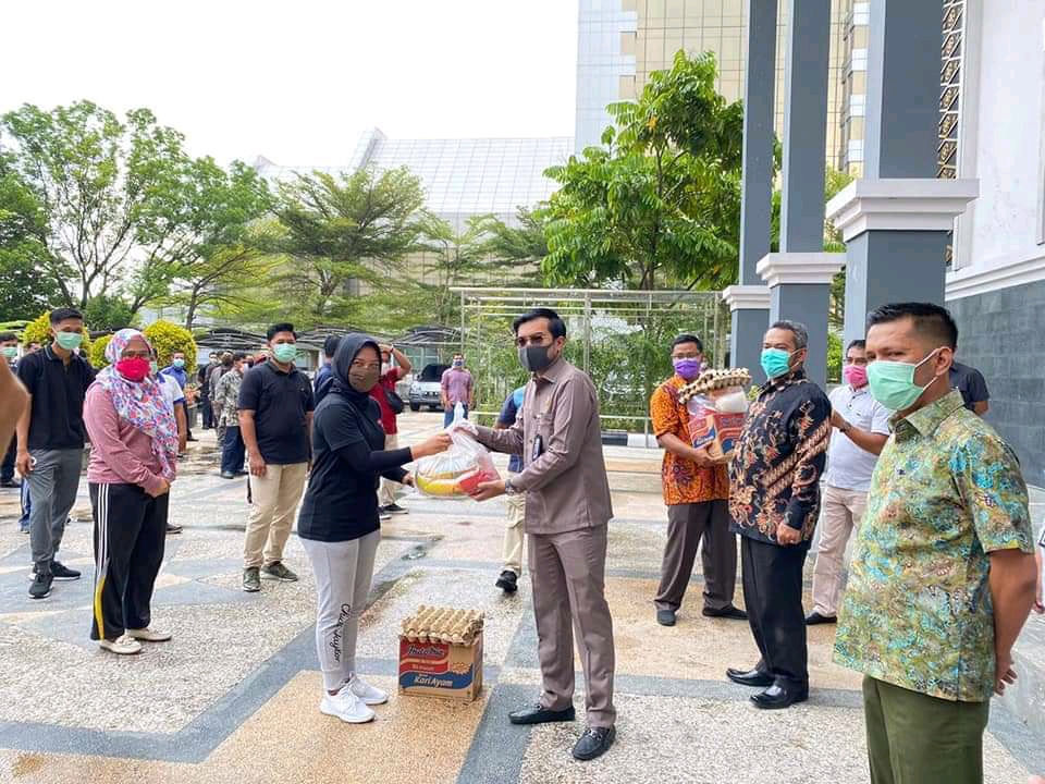 PEKANBARU - Plt Sekwan DPRD Kota Pekanbaru, Badria Rikasari, MSi serta segenap ASN Sekretariat DPRD Kota Pekanbaru, membagikan 137 paket sembako kepada Tenaga Harian Lepas(THL) yang bekerja di lingkungan Sekretariat DPRD Kota Pekanbaru.