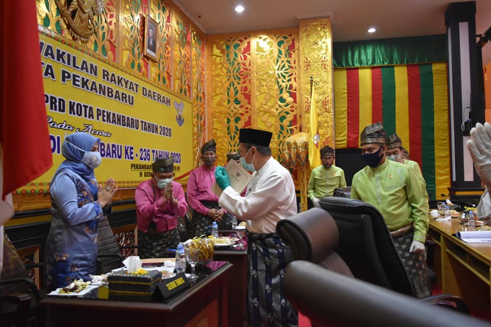 Rapat paripurna berlangsung sederhana tidak banyak mengundang tamu, mengingat saat ini masih merebah nya wabah Covid 19. Para tamu mengenakan pakaian tolak belanga beserta tanjak ciri khas orang melayu. Para tamu undangan, diawal paripurna di suguhkan visual bagaimana terbentuknya Kota Pekanbaru. Yang kala itu berawal dari nama Senapelan dan tak luput dari campur tangan Kerajaan Siak Sri Inderapura.
