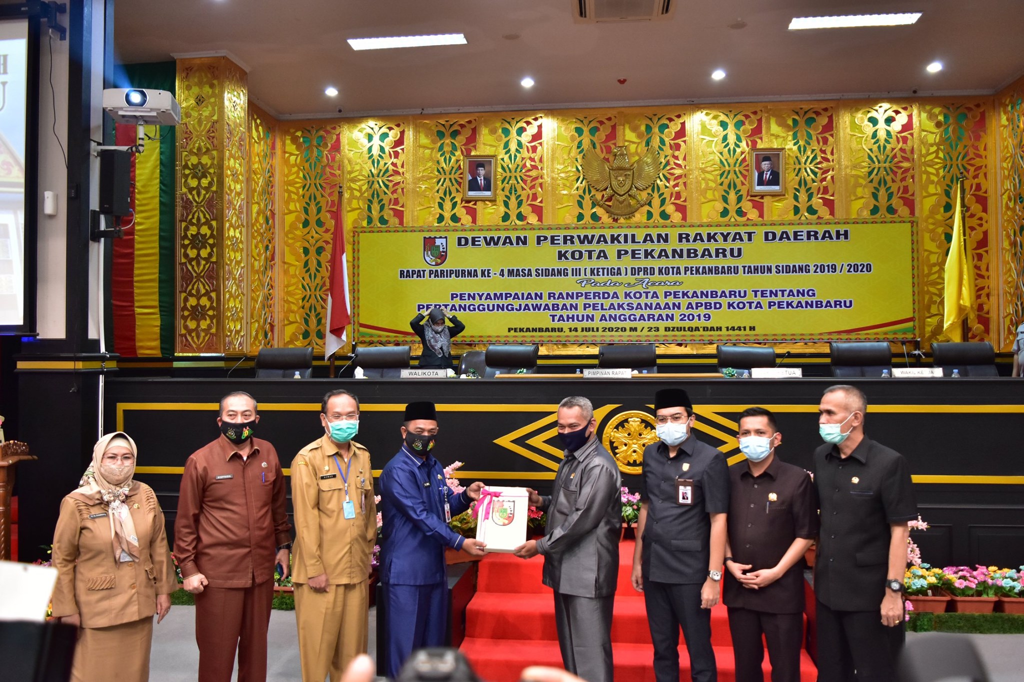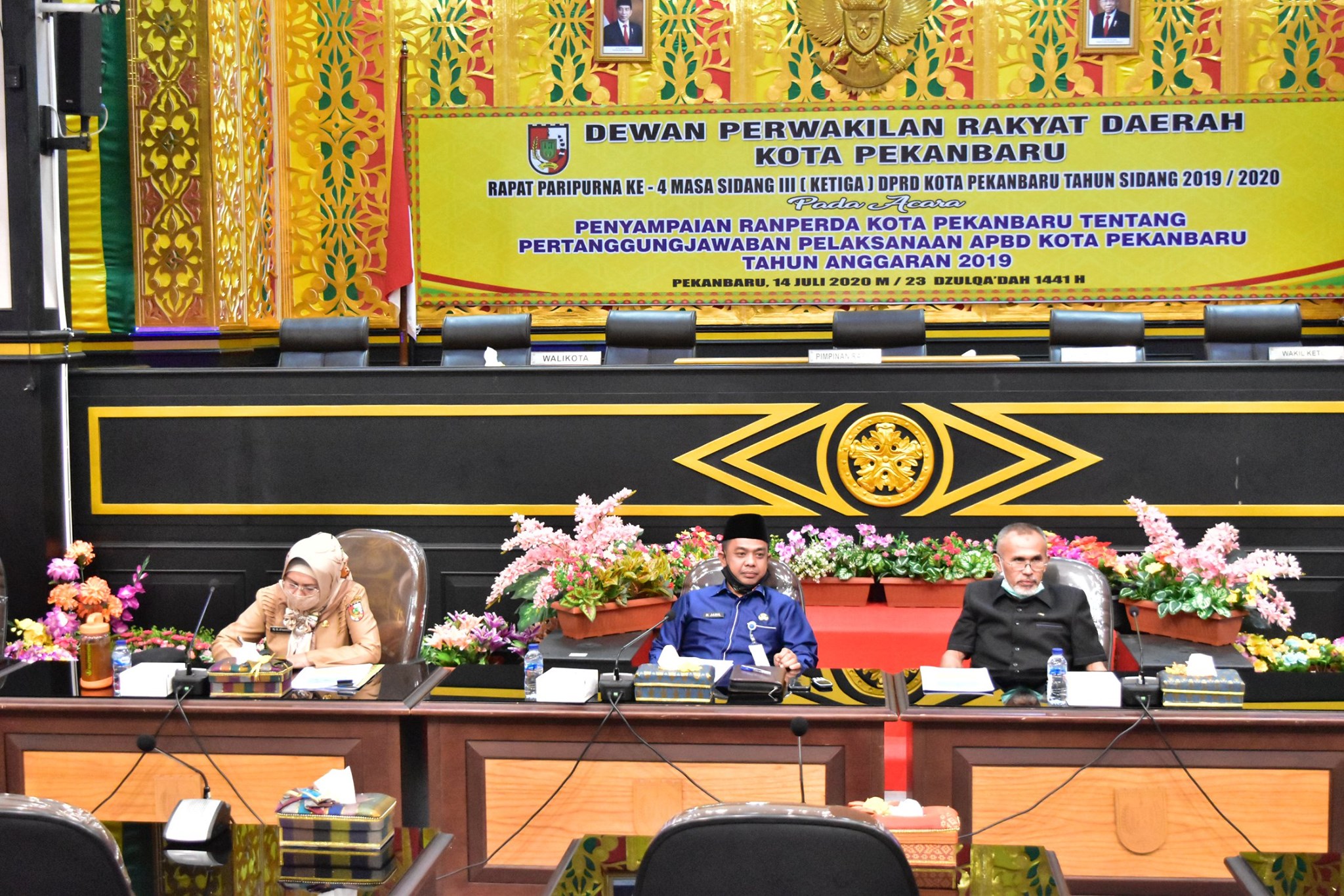 PEKANBARU - Pemerintah Kota (Pemko) Pekanbaru melalui Pj Sekdako M Jamil sudah menyampaikan draf Ranperda Laporan Pertanggungjawaban Pelaksanaan (LPP) APBD Pekanbaru 2019 dalam rapat paripurna, Selasa (14/07/2020).