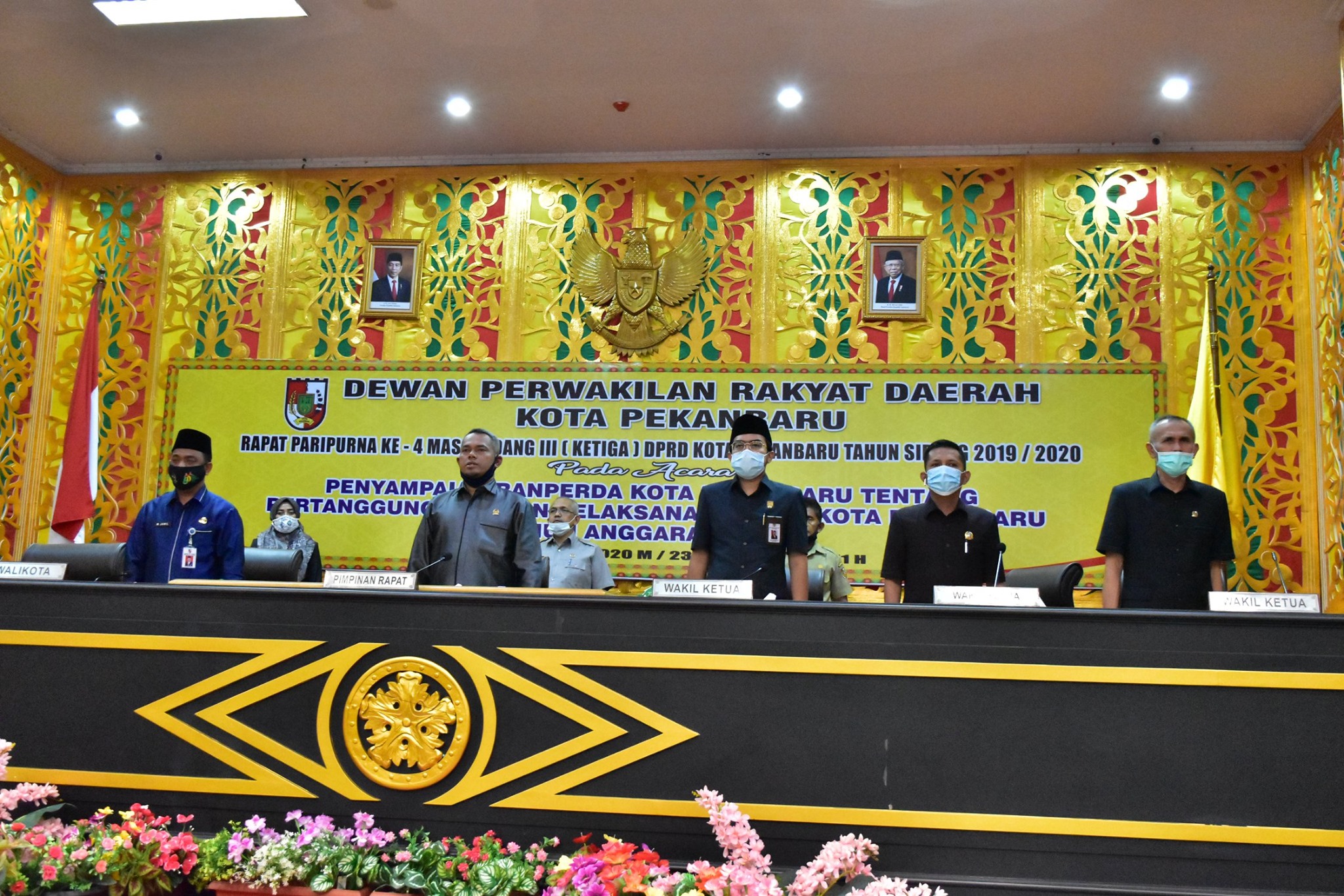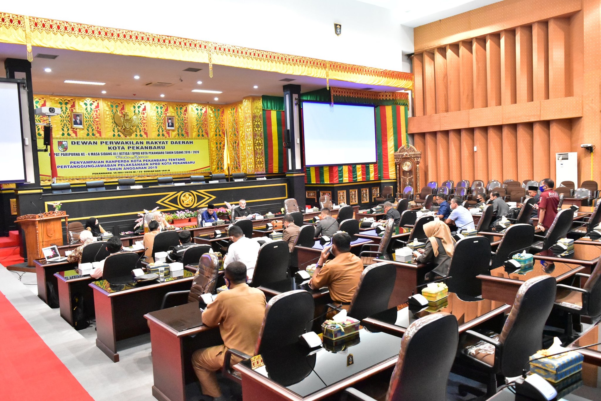 Rapat paripurna yang dipimpin Ketua DPRD Kota Pekanbaru Hamdani serta Wakil Ketua Ginda Burnama, Tengku Azwendi Fajri dan Ir Nofrizal dihadiri juga sejumlah Kepala Organisasi Perangkat Daerah (OPD) dan unsur Forkopimda lainnya dengan menerapkan protokol kesehatan.