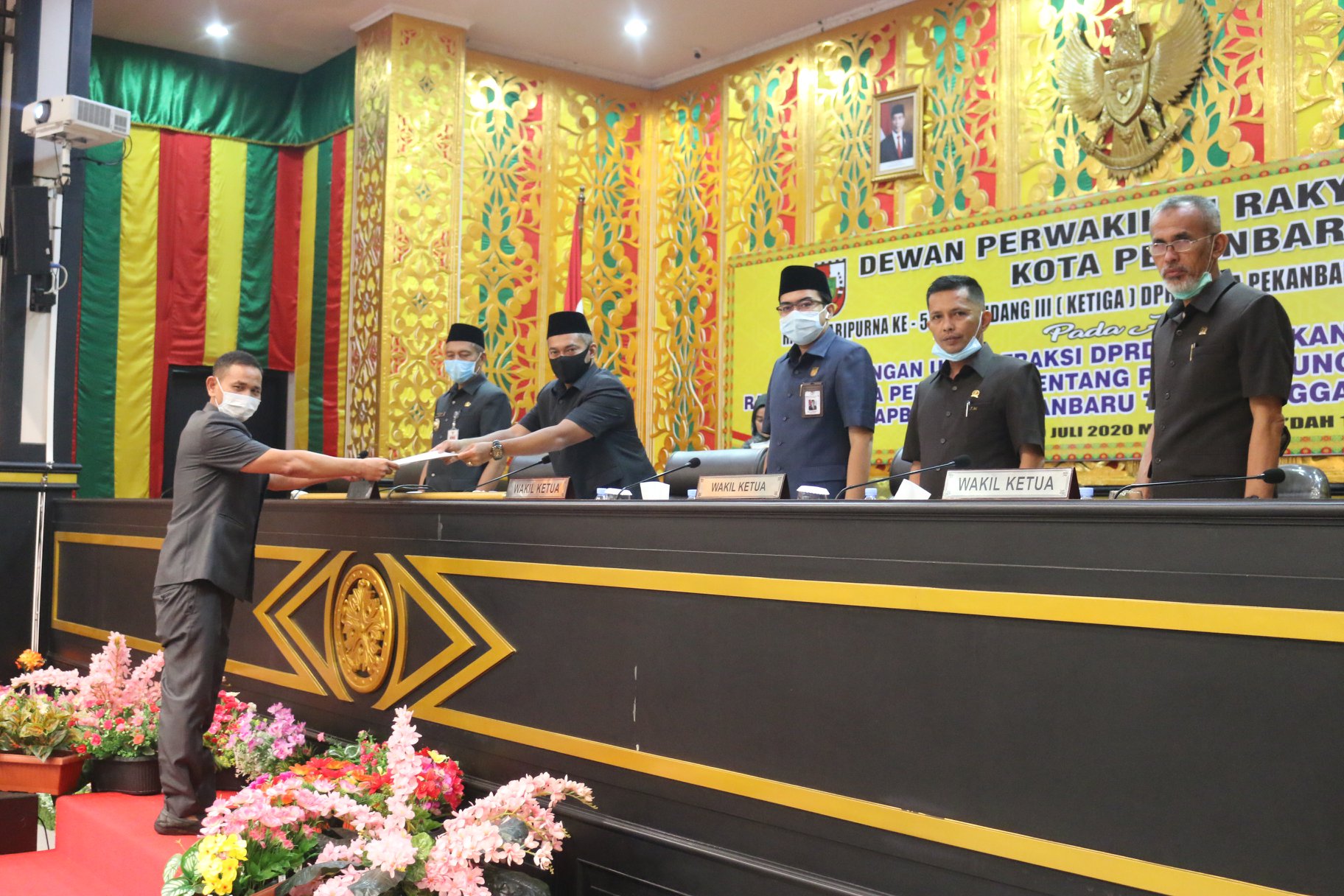PEKANBARU - Rapat paripurna Pandangan Umum Fraksi DPRD Kota Pekanbaru, terhadap Ranperda Pekanbaru tentang Laporan Pertanggungjawaban Pelaksanaan (LPP) APBD Pekanbaru 2019, berlangsung sukses. Namun DPRD Pekanbaru menyayangkan, realisasi APBD hanya di bawah 80 persen.