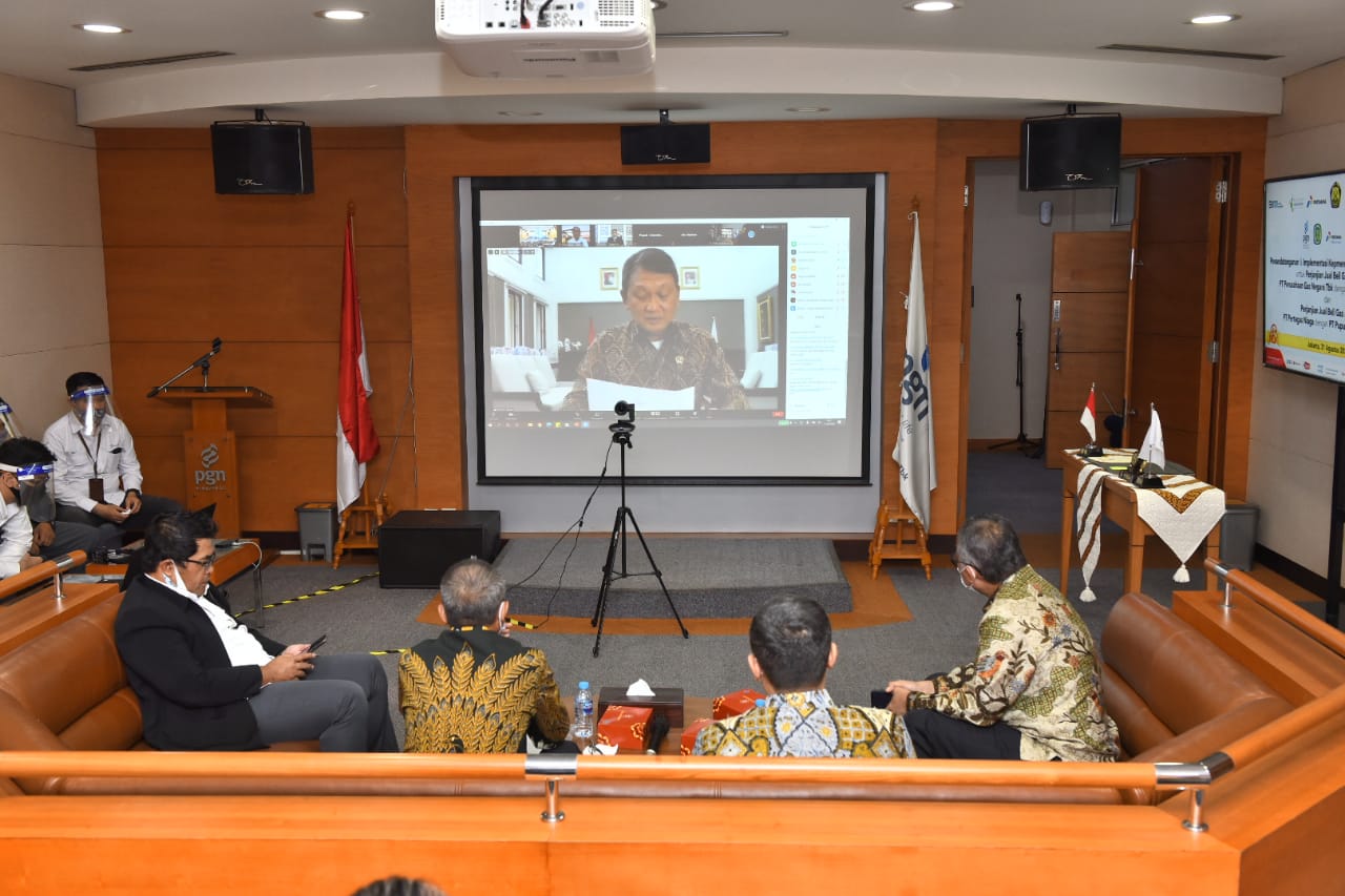 JAKARTA - Sebagai komitmen dalam melaksanakan implementasi Keputusan Menteri ESDM nomor 89K/ 2020 dan meningkatkan ketahanan energi nasional, PT Perusahaan Gas Negara Tbk (PGN) sebagai subholding gas PT Pertamina (Persero), menandatangani Perjanjian Jual Beli Gas (PJBG) dengan PT Pupuk Kujang sebagai bagian dari Holding PT Pupuk Indonesia (Persero), (31/08/2020). Penandatanganan PJBG tersebut dilakukan secara virtual yang diwakili oleh Direktur Komersial PGN Faris Azis dan Maryadi selaku Direktur Utama Pupuk Kujang.