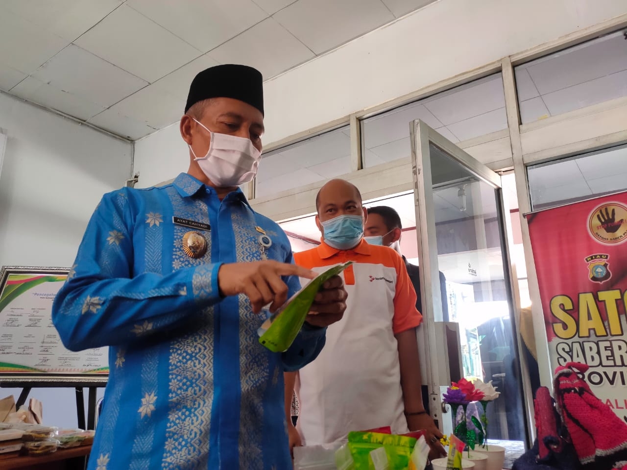 PEKANBARU - Wakil Walikota Pekanbaru, Ayat Cahyadi bersama istri, Indria Rita melihat langsung produk dari sejumlah KUB, UMKM dan KWT, Kamis (8/10/2020). Ada produk berupa makanan tradisional dan minuman.