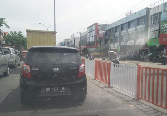 Penutupan U-turn menggunakan pagar besi pada tempat berputar arah kendaraan tersebut. Akibat penutupan itu, Jalan Tuanku Tambusai macet.