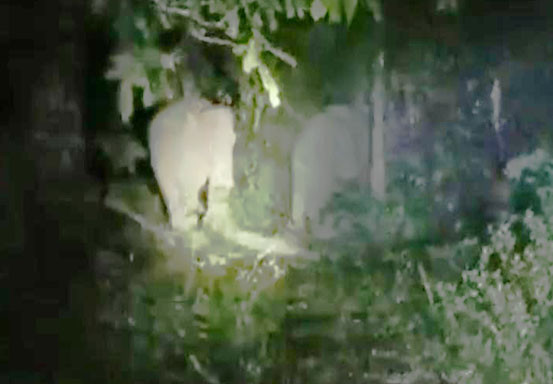 Di lokasi yang berbeda, tim juga menemukan gajah yang lainnya sedang berada di area pemukiman rumah warga. Tim berusaha menghalau gajah itu ke rumah warga dengan menggunakan mercon.