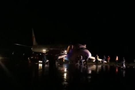 GORONTALO - Pesawat Lion Air nomor JT 892 yang tergelincir di Bandar Udara Djalaluddin, Gorontalo (GTO) pada 18.35 wita dievakuasi petugas.
