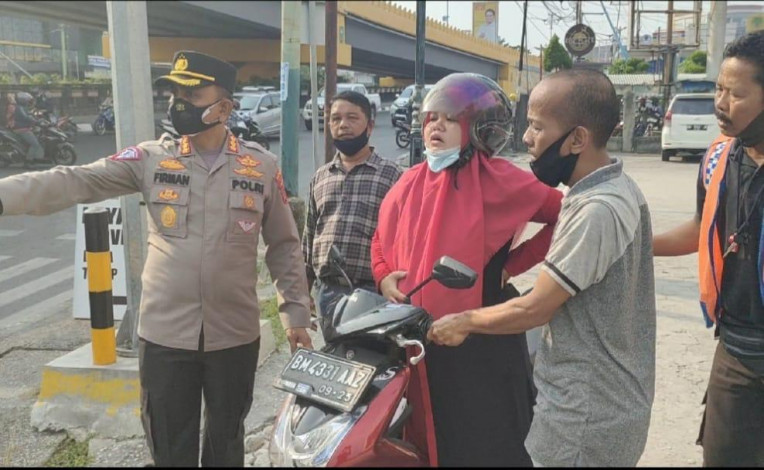 PEKANBARU - Seorang pengendara sepeda motor di Pekanbaru, Puji Astuti (32) nyaris saja melahirkan di lokasi penyekatan PPKM dekat pertigaan Jalan Jenderal Sudirman dan Imam Munandar, Pekanbaru tepatnya dibawah fly over, Jumat (30/7/2021).
