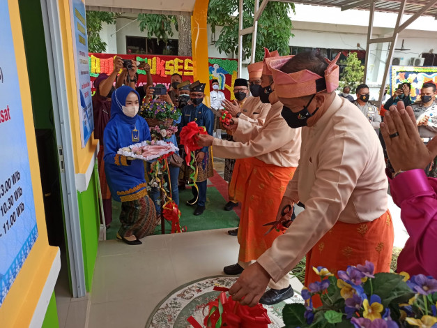 PEKANBARU - Gubernur Riau, Syamsuar meresmikan layanan samsat Drive Thru yang berada di Kantor Bapenda Riau, Jalan Sudirman, Pekanbaru, Senin (9/8/2021).