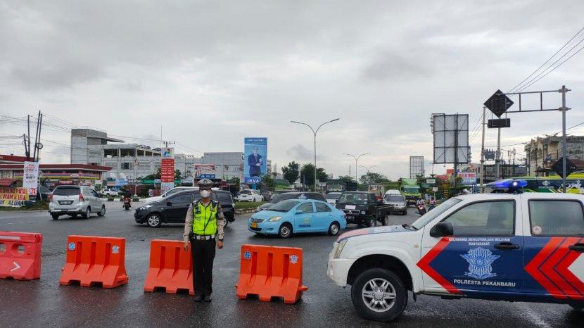 PEKANBARU - PPKM Level 4 di Kota Pekanbaru saat ini sudah memasuki tahap ketiga. Penyekatan jalan dalam kota masih dilakukan di beberapa titik. Kondisi ini menimbulkan kemacetan di beberapa ruas jalan.
