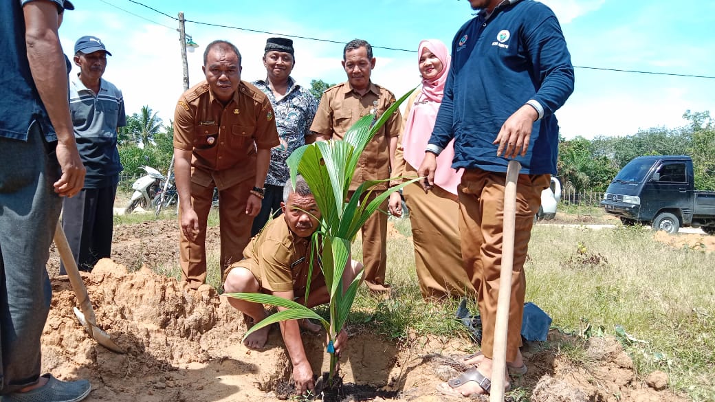 LIPATKAIN - Camat Kampar Kiri, H Marjanis SE mengapresiasi langkah Pemerintah Desa Kuntu untuk membangun kebun agrowisata. Hal ini disampaikannya disela-sela penanaman bibit di Kebun Agrowisata, Dusun Binaan, Desa Kuntu, Kecamatan Kampar Kiri, Senin (25/10/2021) pagi.