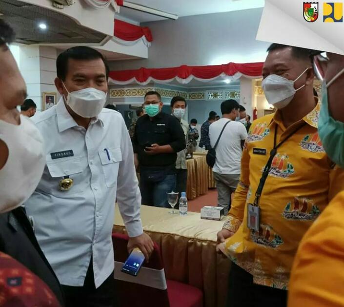 PEKANBARU - Kepala Dinas Pekerjaan Umum dan Penataan Ruang (PUPR) Kota Pekanbaru Indra Pomi Nasution mendampingi Walikota Pekanbaru Firdaus dalam kegiatan pertemuan dengan Direktur Jenderal (Dirjen) Cipta Karya Cipta Karya Kementerian Pekerjaan Umum dan Perumahan Rakyat (Kemen PUPR) Diana Kusumastuti di Balai Pauh Janggi, Gedung Daerah Riau, Kamis (30/9/2021).