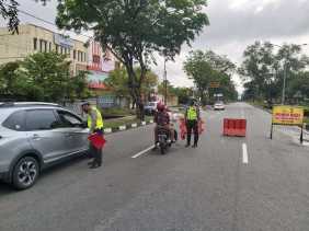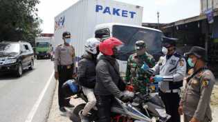 PEKANBARU - Petugas kepolisian yang melakukan pengawasan di seluruh lokasi perbatasan Kota Pekanbaru.