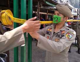 PEKANBARU - Satpol PP Kota Pekanbaru menyegel tempat karaoke Kezia99, Senin (13/4/2020). Tempat hibu.