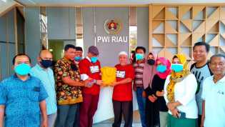 PEKANBARU - PWI Riau Peduli dan Serikat Perusahaan Pers (SPS) Riau memberikan bantuan untuk 100 repo.