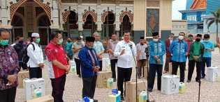 PEKANBARU - Walikota Pekanbaru DR. H. Firdaus, MT, menyerahkan bantuan cairan disinfektan sekaligus .