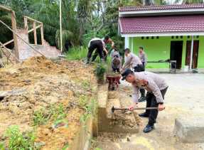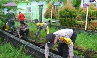 BENGKALIS - Dalam rangka peringati Hari Juang TNI AD ke-77, Polsek Rupat ikut bergotong royong bersama di Jala.