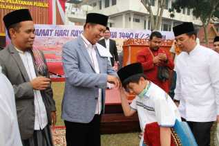 PEKANBARU - Wali Kota Pekanbaru, Dr H Firdaus ST MT mendirikan ibadah shalat Idul Adha 1440 H di lapangan Kantor Wali Kota Peka.