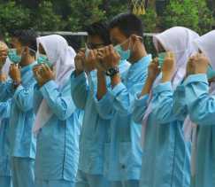 Antsipasi ISPA, SMK Perbankan Riau Bagikan Masker Gratis ke Siswa