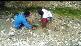 Cari Air Bersih, Warga Gali Bebatuan di Sungai Kering
