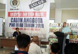PEKANBARU - Sebanyak 110 orang wartawan di Riau mengikuti orientasi dan ujian masuk calon anggota Pe.