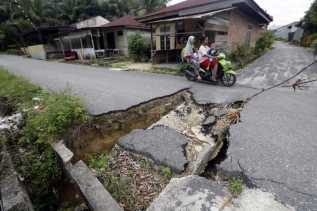 Waspada! Badan Jalan Kamboja Pekanbaru Ambles