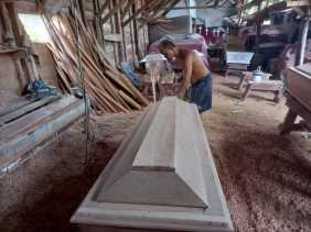 PEKANBARU - Salah satu usaha pembuatan peti mati milik Dwi Susanto Panjaitan yang beralamat di Jalan.