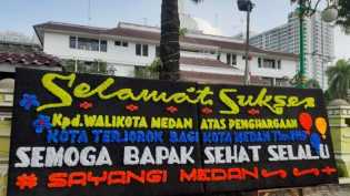 MEDAN - Wali Kota Medan mendapat kiriman karangan bunga dari warganya. Yang unik, karangan bunga itu bertulisan 'Selamat, M.
