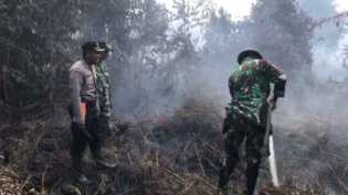 MERANTI - Tim Satuan Tugas penanggulangan Kebakaran Hutan dan Lahan gabungan unsur Polri, TNI, TRC-BPBD, Satpol PP dan Masyarak.