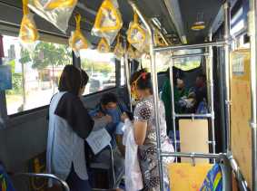 PEKANBARU - Bus vaksinasi keliling di Kota Pekanbaru menjangkau sejumlah lokasi setiap harinya. .