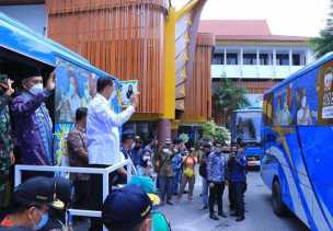 PEKANBARU - Pemerintah Kota (Pemko) Pekanbaru kembali meluncurkan lima unit bus vaksinasi, Senin (7/.