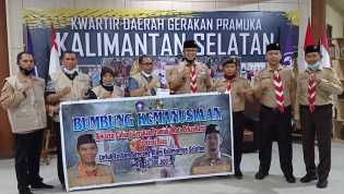 BANJARMASIN - Kwartir Cabang Gerakan Pramuka Kota Pekanbaru, yang dipimpin Ketua Harian Toni Werdiansyah menyerahkan bantuan bu.