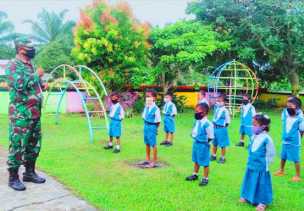 Kodim 0313 KPR Ajarkan Murid TK Disiplin Protokol Kesehatan