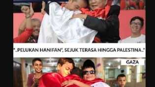 BANDUNG - Momen pelukan antara Joko Widodo dan Prabowo Subianto 'diifasilitasi' pesilat Hanifan Yudani Kusumah di lokas.