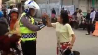 Tolak Ditilang, Emak-emak Ini Tempeleng Polisi